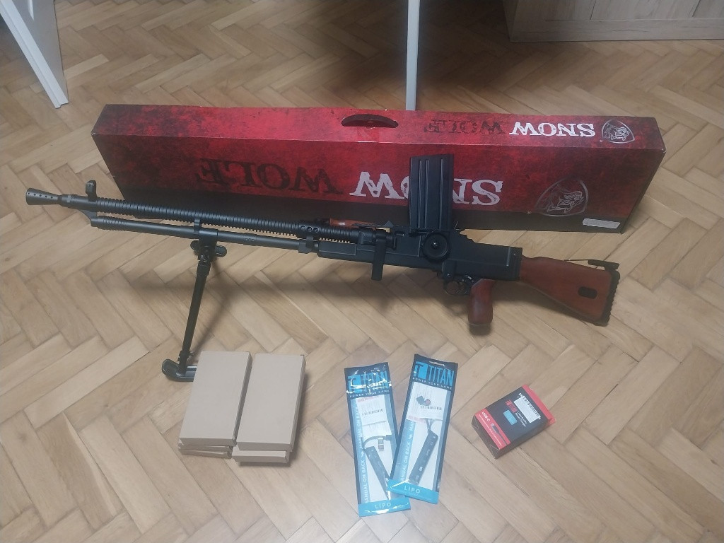 Prodám úplně nový airsoftový - AEG kulomet ZB 26 od Snow Wolf. Kupován na konci listopadu na AirsoftMoravě. V Anareusu následně vyměněn konektor z malé Tamyi na DeanT a dokoupeny 2x LiPo 1000mAh baterie a nabíječka od Titanu. Ke zbrani též dalších 6 fungl nových náhradních zásobníků, ještě nevybalených. Ke všemu mám faktury. Ze zbraně byly vystříleny jen asi dva zásobníky kuliček doma. Venku nebyla vůbec. Prodávám pouze jako celek. Preferuji osobní předání.