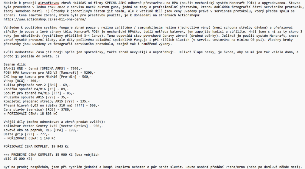 !!!MOŽNOST VÝMĚNY ZA VFC GBBR!!! (ideálně xm177e2, ale nebráním se i jiným nabídkám) Popis je na jedné z fotek. Nedokázal jsem se poprat s formátováním textu tady v inzerátu. :D Pokud vás něco zajímá, klidně se ptejte. Budu-li vědět, odpovím.