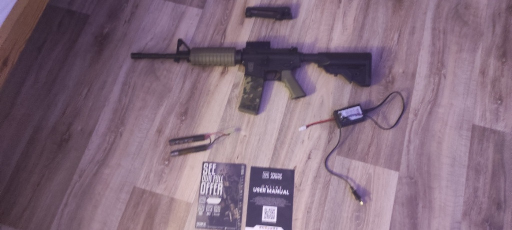 Je to elektrická m4a1 je v ní lepší pružina a ještě něco myslím jinak střílí perfektně je k ní teda pouze jeden zásobník ale mě to vždy vystačilo je točný mohu přidat chránič na pusu a celkově je to dobré do začátku nebo už i pro pokročilé já airsoft hrál už 4 roky a jinak perfektní měnil jsem baterií pažbu a nabíječku mám i originální krabici přímo od specna arms