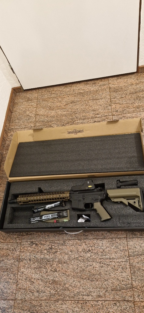 Prodám tuto zbraň z důvodu přecházení přechodu na hpa. Zbraň je stará zhruba 5 měsíců. Nějakou dobu už s ni nehraju. Ma to Bluetooth procesorovou jednotku. Tak jak jsem ji koupil, tak i zůstala. Zbraň je v uprgradu přímo od výrobce. Se slabší pružinou dává 1,7 joulu s 0,30 kulickami. Čistá Zbraň za 8000. Můžu dát k tomu i ten kolimator za 600 nebo baterku titanku 11.1 za 500. Preferuji osobní předání.