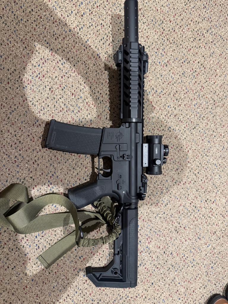 Prodám tuhle zbraň od Specna arms. Nikdy nebyla Hraná Přidám 4ks tlačných zásobníků. Prodej bez kolimátoru a popruhu.