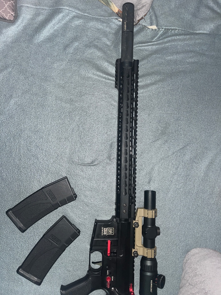 Prodám Specna Arms SA-V26 ONE red edici komplet překopanou…uvnitř:Hop komora maxx,nerez hlaveň ml 6,02 myslím 470/510mm..,retro mech půlený,retro ramínko trysky,retro ramínko přepínače,retro píst 14,5 zubů,kolečka 1:18 cnc ,leviathan BT,válec plný hladký nerez,hlava válce cnc shs ,hlava pistu fps,tryska retro cnc,motor aimtop 130 zatěžák,ložiska kluzný.. 2x baterka 11.1v 1100mha,naháňka VISIONKING(32),6x zásobník na 140bb tlačný(,tlumič(jen špinaví),montáž na naháňku foreward nebo tak nějak.. na ceně se dá domluvit..byla v servisu tudíž namazaná zkontrolovaná..vyměněná dopadovka a pružina:)