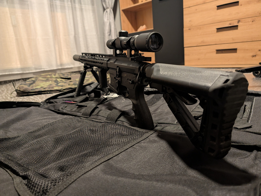 Prodám airsoftovou pušku G&G GC16 Warthog 12" ve velmi dobrém stavu. Zbraň je upravená pro přesnější střelbu a lepší konzistenci, ideální jak na les, tak na polo-DSG/DMR styl hraní. Úpravy a výbava: MAXX hop-up komora , prodloužená hlaveň vedená až do tlumiče, DMR tlačné zásobníky na 120 ran – spolehlivé podávání, žádné chrastění.Zbraň je plně funkční, bez závad, pravidelně udržovaná, žádný „dojezd“. Prodávám z důvodu přechodu na jiný projekt. Prodám vše tak, jak je na fotkách, rozumná dohoda možná, předání nejlépe osobně v okolí Jindřichova Hradce, Českých Budějovic nebo Hluboké nad Vltavou. V případě zájmu rád pošlu další fotky nebo video funkčnosti.