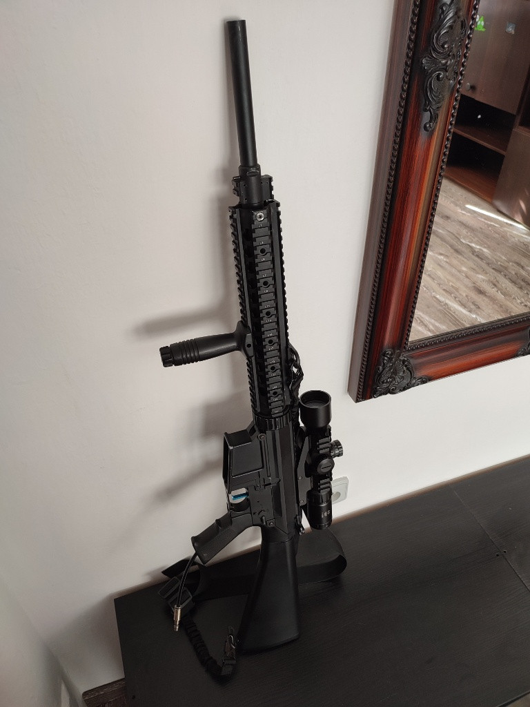 Zdravím, chci prodat svojí hpa krásku, důvod chci se vrátit na chvíli k aeg, zbraň je výkonná díky dlouhé hlavni, na cca 100psi dává 2,5J s 0,40gramaží takže šetří vzduch + má Maxx komoru, s Maple leaf gumičkou tvrdost si bohužel nepamatuji, ke zbrani dávám 4 tlačný zásobníky + 1 točák dále lahev s hadicí a regulátorem a i vysokotlakou pumpičku když budete chtít vše v cenně jediné co je bohužel jen na foto ale budu si nechávat je optika, když budete mít zájem pište sms.