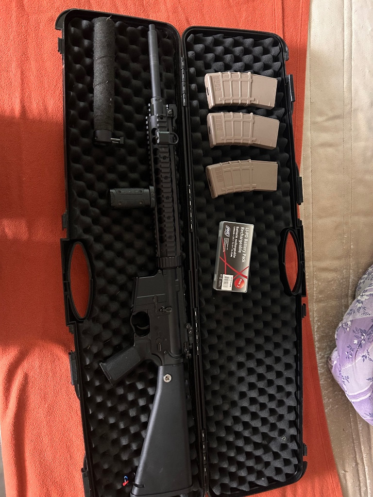 Prodám svoji SR25 která je nalazeno na 2J 0,30g kuličky vlastněná skoro 2 roky odehráno 15 akci je k tomu jedna baterie 3x zásobník na 120 kuliček k tomu přidám jeden pytel kuliček 0,30g bio při rychlém jednání jsem o ceně jsem schopni jednat a preferuji osobní předání