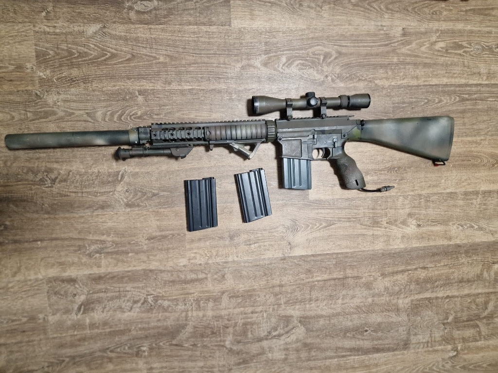 Zdar, prodám SR25 v HPA. Zbraň je starší a ležela mi asi 2 roky v kufru, nehraju s ní a už ani nebudu. Aktuálně po připojení na vzduch trošku syčí (video pošlu do whatsappu). Takže nejspíš bude potřeba udělat těsnění. Nerozumím tomu a nechci se do toho hrabat, takže zohledním v ceně. Ve zbrani je ProWin komora, nějaká kovaná hlaveň (už netuším jaká), 3x zásobník (2 tlačné, 1x točný), optika. Cenu nabídněte.