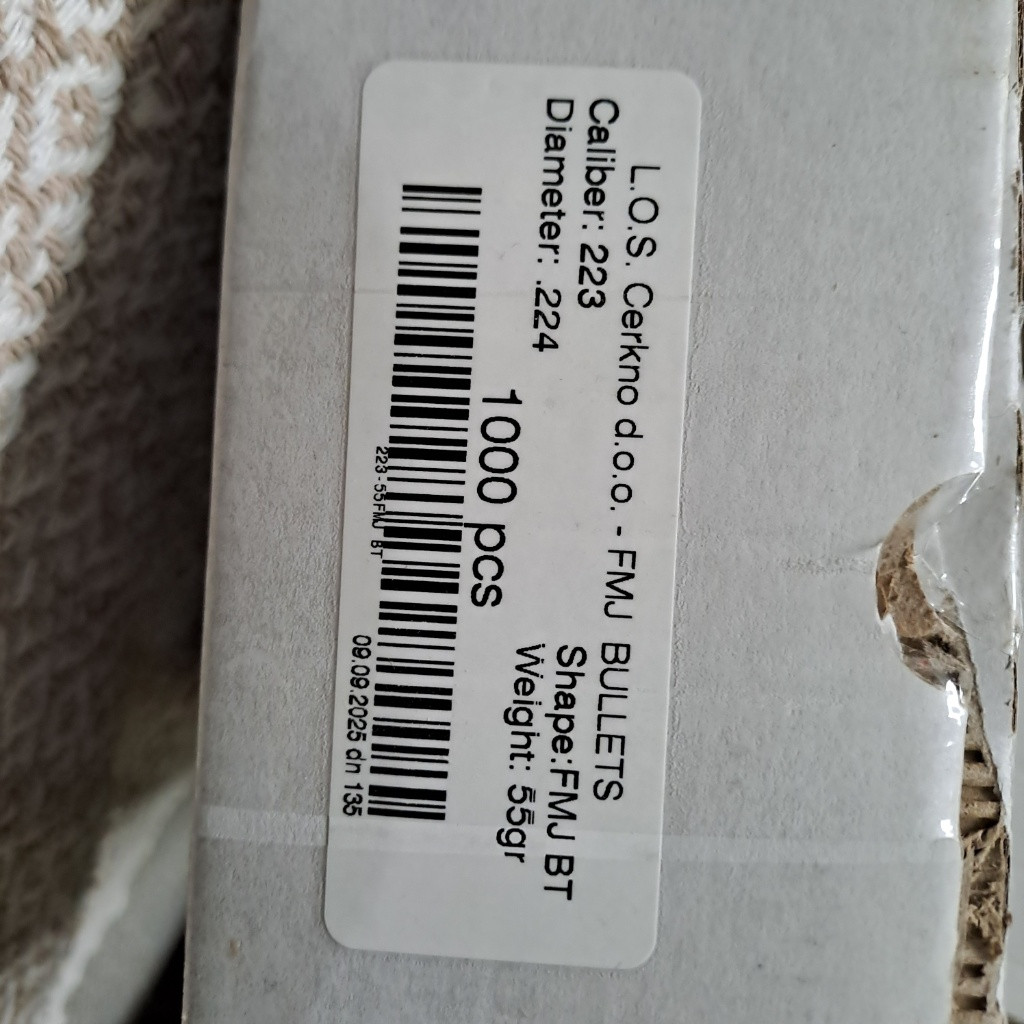 Prodám střely LOS .223 , 55gr Cena za kus 2,4kč, baleni 1000 ks Mohu poslat max po 4000ks Bližší info viz foto.