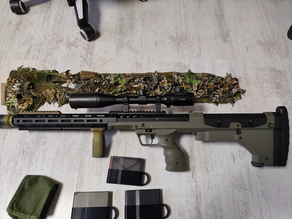 prodám srs A2. Upgrade spoušť, upgrade hlaveň bohužel značku nevím.Faceless hlava, faceless centrovací kroužek na pístu. Maxx komora. Na pružině m120 dává s 0, 48 2,8J. K tomu optika a novritch camo. 3 zásobníky 2 funkční v jednom chybí jezdec. Prodávám z důvodu nesedí mi natahování. Přesná a tichá snipa možnost i výměny za hpa dmr