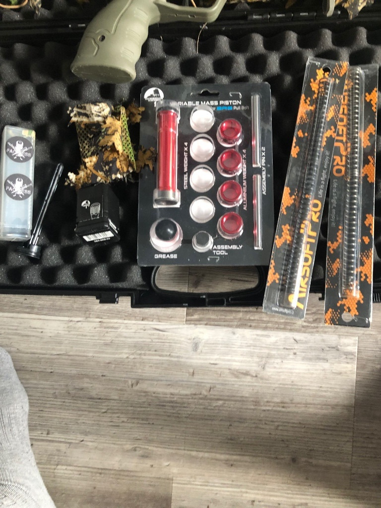 Dobrý den, rad bych prodal svoje SRSo v podstatě nové. Zbraň je celé úplně vyměněna kromě hlavně a hop komory. Guma Faceless. Přítlačný váleček taky Faceless. Trn taky Faceless. Mousefart Faceless. Nastavitelný píst Silverback. Pružina 150 As pro nechám k tomu ještě původní a 160 As pro. Grip natahovaci paky je silverback nechám k tomu původní. Tlumič as pro vevnitř custom pěna. Na zbrani theta optics optika nechám k tomu. Nechám k tomu Novritsch amber camo. K tomu dam 3 zásobníky. Původní cena cca 21000.Původní krabici mám. Cena dohodou. Vše co je na fotce kromě kufru. Mohu klidně. zaslat.