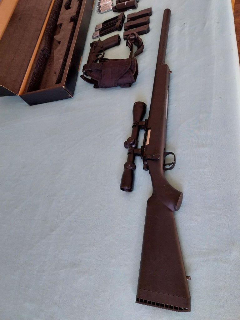 Prodám ssg10 zbran je minimálně pouzita jsou k tomu 4 zasobniky a zbytky kuliček v lahvickach potom optika viktoptik 3x9x40 je tomu i pistol asg schadow1 bez blowbeku na bombicky.k pistoli jsou 2 zasobniky a 10ks bombicek a pouzdro.tak jak je na fotce.