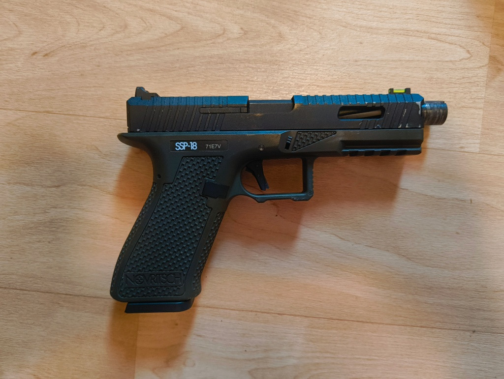 Dobrý den prodám pistol SSP 18 a k ní nějakej gear.Mam k tomu 2 velký zásobníky na vic a 3 pouzdra na zásobníky k tomu ještě je (maintenance kit) kde jsou všechny věci to potřebujete na ladnej provoz zbraně a na opravu zbraně, k tomu ještě jsou brýle a maska,pár nálepek a puzdo které se připevňuje na stehno a pásek.Zdarma k tomu dávám balení kuliček gramáže 0,32g a 3 plyny 2 z toho jsou červený a jeden z toho zelený. Originál cena je 10 000+ takže podle mě fér cena ale popřípadě rychlého jednání můzu zlevnit;) (Na obrázku není všechno nešlo mi to tam dát )