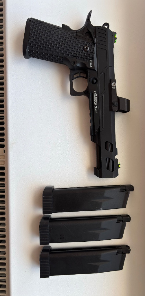 Prodám SSP 5 (6”) s kolimátorem premium micro V3 a třemi zásobníky. Zásobníky jsou všechny na hnací plyn. Zbraň je funkční bez závad.