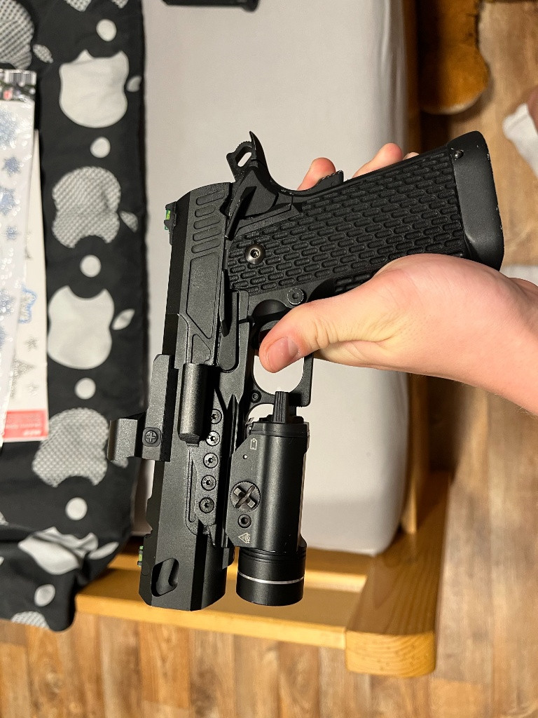 Dobrý den, prodám svoji SSP5, kterou vlastním přibližně 9 měsíců. Všechno funguje bez problémů. Jediný dřívější problém byla prasklá pojistka, která byla vyměněna a zbraň byla následně promazána v AirHardu. Od té doby nebyla použita na žádné akci. Zbraň prodávám v plné výbavě, která zahrnuje: SSP5 Kolimátor (se zmiňovaným drobným poškozením skla, ale plně funkční) Svítilnu 3x zásobník Baterie do svítilny i kolimátoru Premium Red Dot Plate Universal Holster Adapter Open Universal Holster Holster – Paddle Mount Hi-Capa Thread Adapter Celková hodnota této výbavy byla na oficiálních stránkách Novritsch přibližně 13 000 Kč. Cena: dohodou Možná výměna za: HPA nebo GBBR M4 / MK18. Kontakt: Email SMS Telefonicky pouze ve všední dny po 15:00, o víkendu kdykoliv. Děkuji a těším se na vaše nabídky!