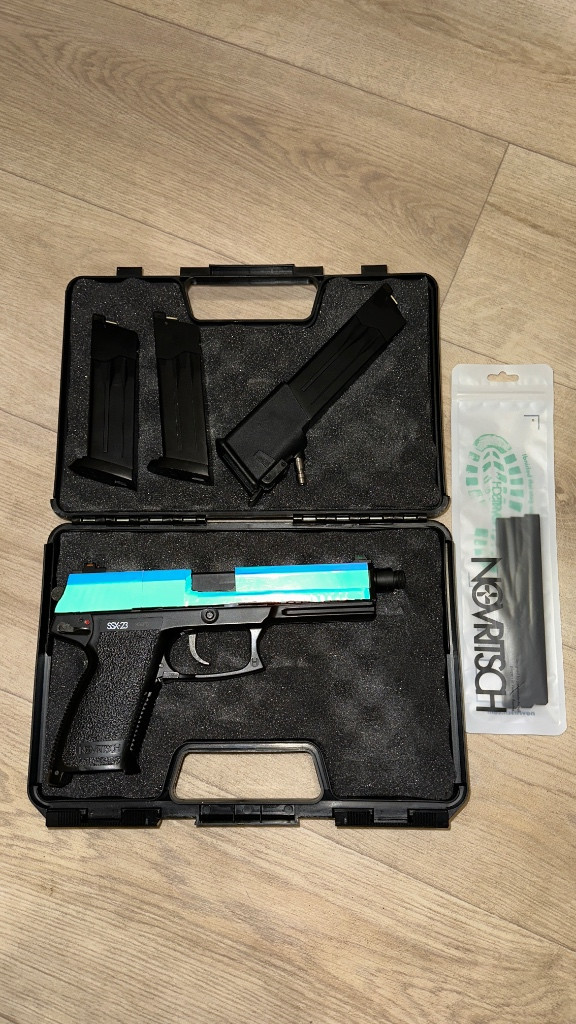 Dobrý den prodám jednou použitou pistoli Pistole 2x zásobník na plyn adaptér pro tlumič a hpa adaptér to vše v kufříku. Důvod prodeje mám těch zbraní až moc a nehodí se na můj agresivní styl hry kupováno prosinec 2025 a leden 2026