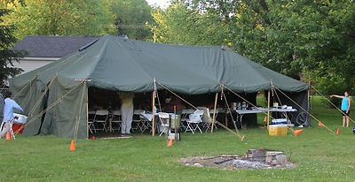 Stanová plachta vinylová. Hlavní tyče + ráhno, Obvodové tyče, Vchodové tyče, Kolíky 20 ks cca 40 cm. Stan nemá okna po bokoch ma len 2 otvory na streche ohľadne svetla , zveda se celá stena výhoda v lete že v stane nieje horko ked vyzdvihnete oby dve strany a spravyte prievan .Fotky ilustračné . stan je v dobrom stave . Stan je určený pre 20 ľudí a ma 2x otvory pre kamna a možnosť pripojenia klimatizácie alebo ventilátora .Veľkosť stanu je 5x8 cca m , je to originál stan nie žiadna replika .Viac info po telefonu . US army , USA