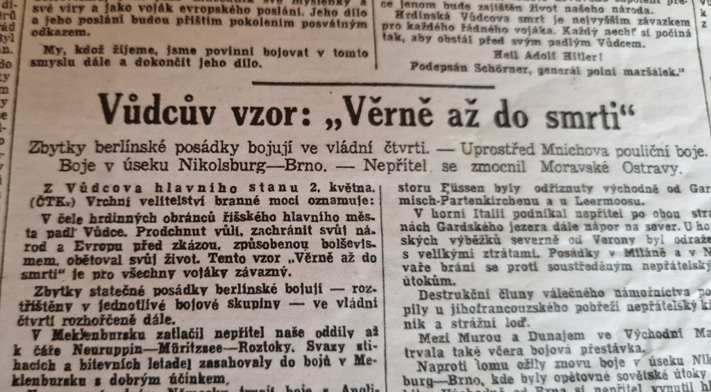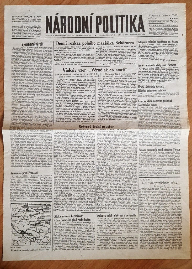 Prodám tyto raritní,originální,už málo vídané noviny Národní politika ze dne 4.května 1945 a Polední list z 5.května 1945. s titulkem Vůdce padl,z 2.května 1945. Ty ze 4 května informují o smrti Hitlera a nabádají k neutuchajícímu boji v jeho jménu jeho hrdinské smrtiaj. ty z 5 května třeba zajímavý titulek prohlášení K.H.Franka v rozhlase k neutuchjící práci pro říši do samého konce aj..Málo vídané a hodně ceněné výtisky,pro sběratele militárií a německých věcí ww2.Jedná se pouze o jednolisty - takto to bylo k těmto událostem vydáno.Za originalitu ručím vrácením peněz.Cenu nabídněte pouze na e-mail.Děkuji. Alternativní investice v podobě investování do originálních sběratelských předmětů je jistým bezpečným přístavem pro Vaše finance, jelikož v tomto oboru se snoubí historická hodnota sběratelského předmětu, jeho omezené množství a neutuchající poptávka z řad dalších sběratelů a investorů. Upozornění: Toto je určeno pro sběratele, studium historie nebo pro reenaktory. V žádném případě nesmí být zneužito k propagaci fašismu nebo jiného hnutí směřujícímu k potlačení práv a svobod člověka.