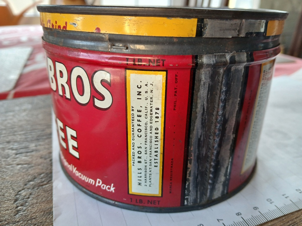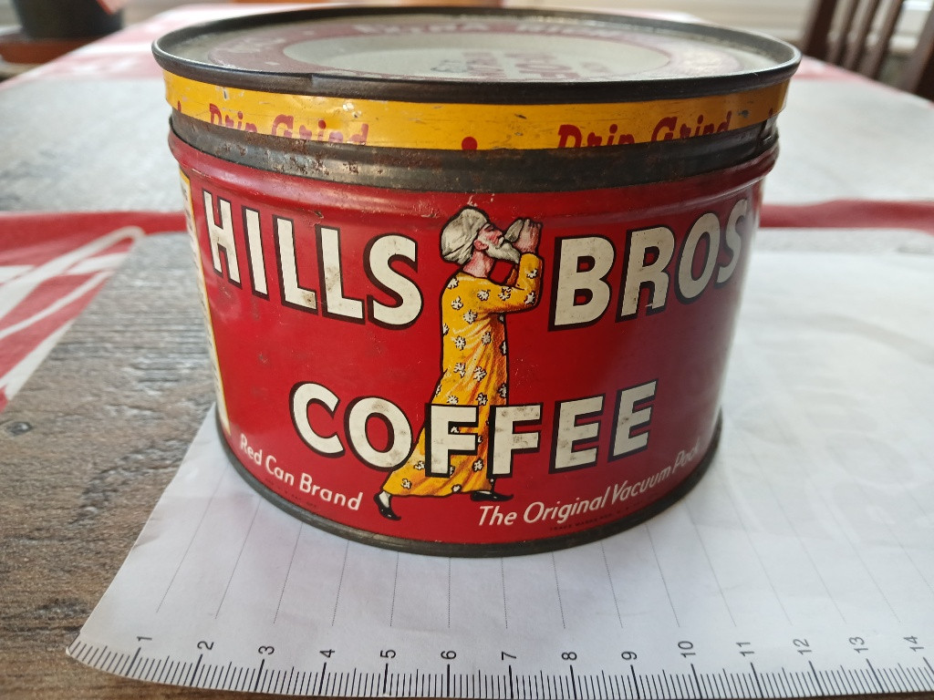 Stará americká plechovka od kávy "HILLS-BROS" ze 40tých let v zachovalém stavu. Vhodná pro dekoraci, sběratelství apod..., zachovalý vnitřek. cena 700,-