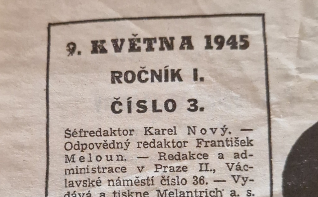 Staré origo noviny České slovo, 9.květen 1945
