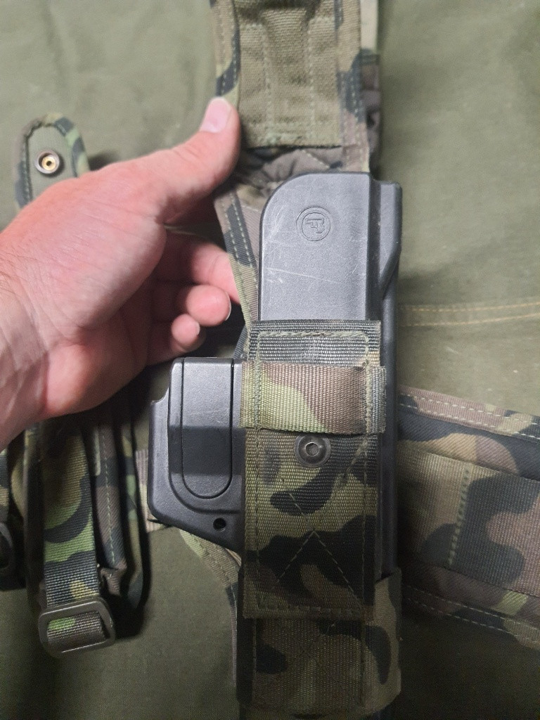 Prodám použité stehení pouzdro na pistoli CZ 75 SP01 Fantom. Navíc jsou k tomu 2 sumky na zásobníky. Cena 1500Kč. V případě zájmu udělám více fotek.