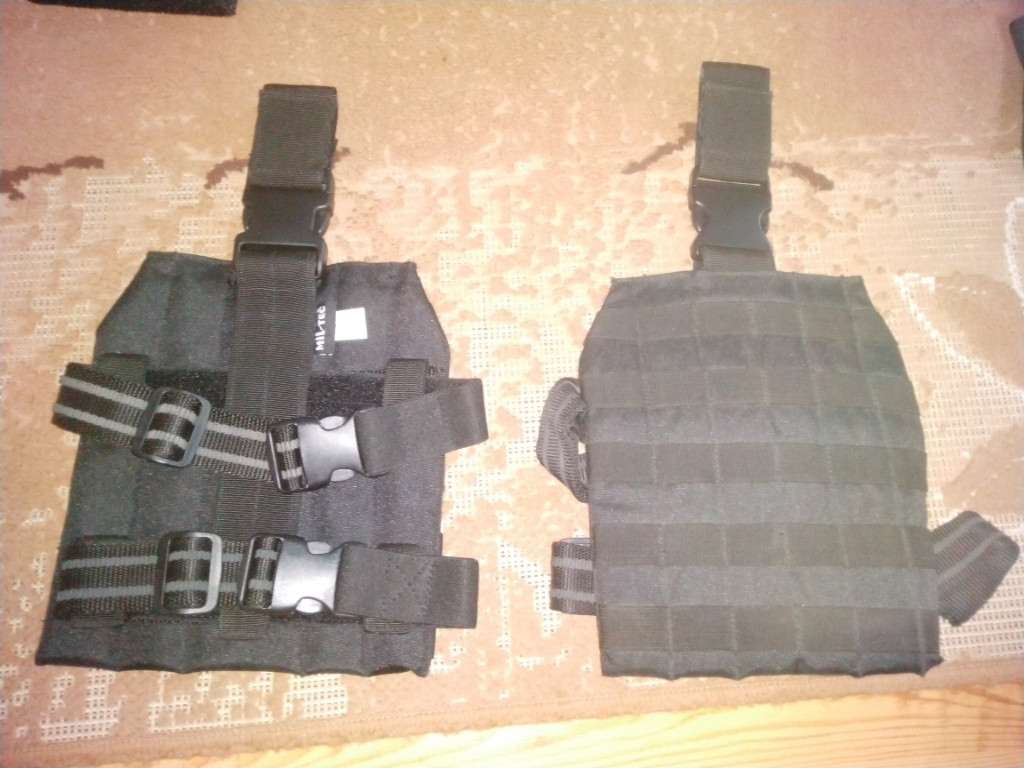 Stehenní panel MOLLE, černý. 5 řad pásek (PALSu). 2 odnímatelé a nastavitelné popruhy na stehno s antiskluzovým povrchem.