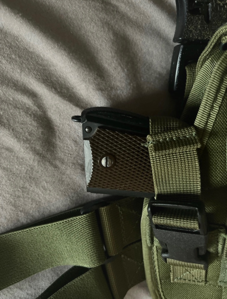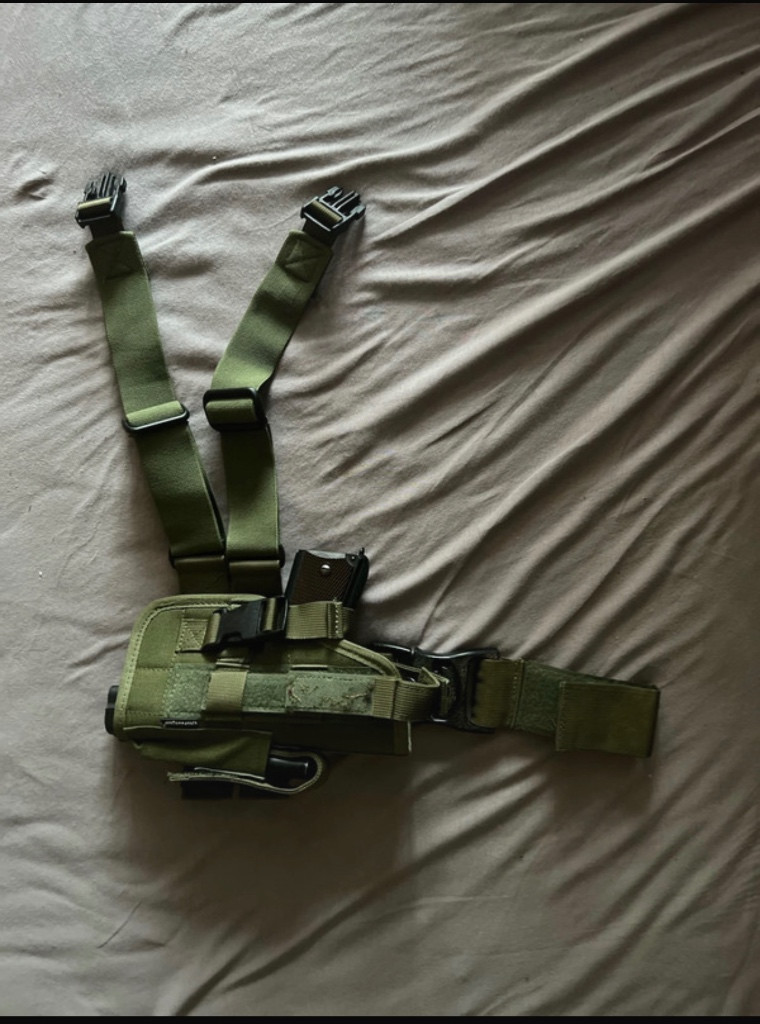 Kvalitní pouzdro na zbraň. Ma na sobě místo na další zásobník viz. foto. Cena bez zbraně a zásobníku.