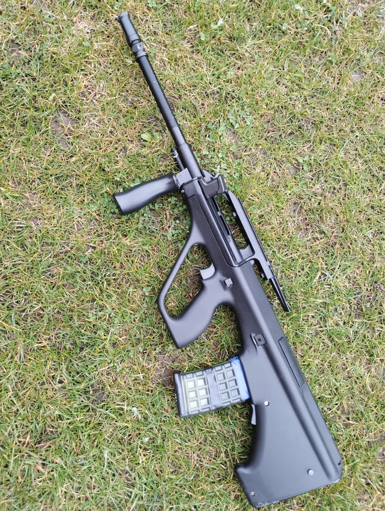 Predám airsotovú elektrickú zbraň Steyr AUG A2 od výrobcu CLASSIC ARMY. Pretesnená, premazaná, vypodložkovaná. Nová hopup gumka maple leaf macaron 60 a omega prítlak. 360fps. Zbraň mala prasknuté telo vzadu dole okolo šróbu. Opravené, prestriekané, ani to nevidno. Ku zbrani sú 2 točné zásobníky (jeden bol prasknutý, podáva horšie), 3 baterky NiMH (1x8.4 a 2x9.6), nabíjačka, tlmič, kolimátor Tokyo Marui. Cena za všetko je 100€. Cena bez tlmiča a kolimátora je 80€.