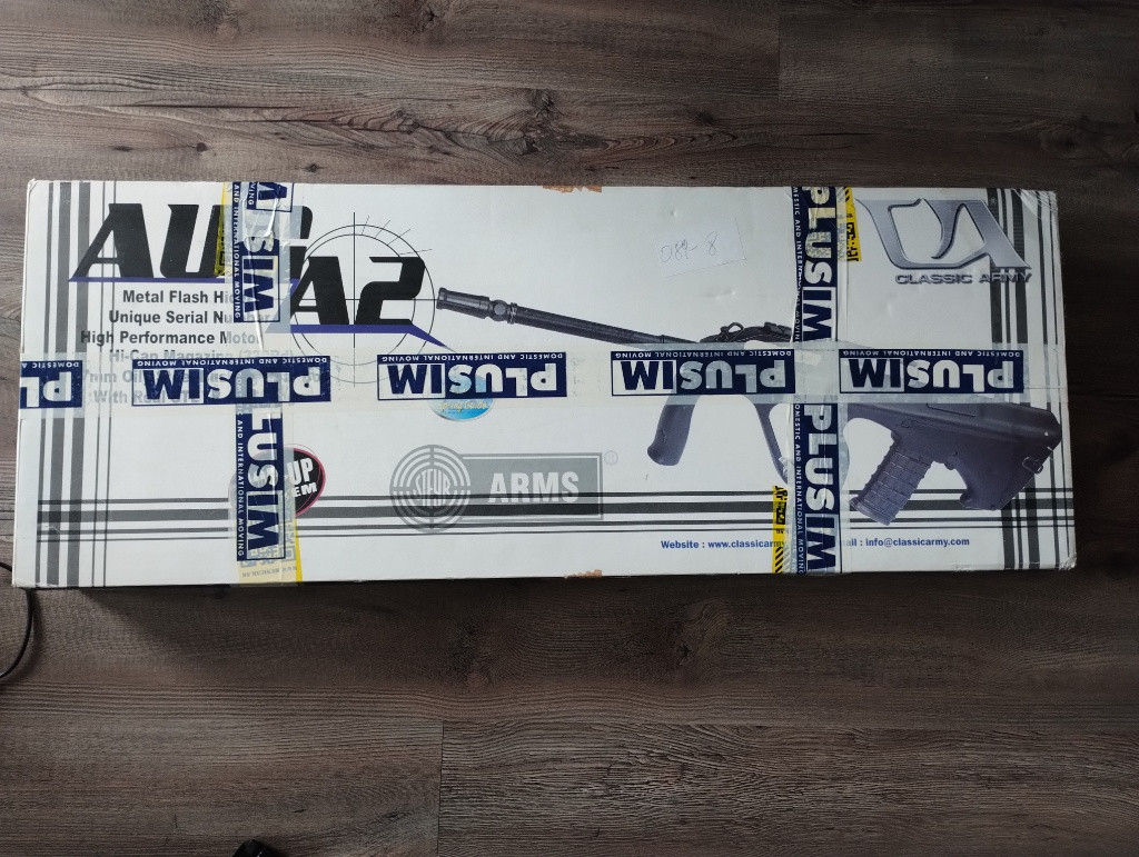 Predám airsotovú elektrickú zbraň Steyr AUG A2 od výrobcu CLASSIC ARMY. Pretesnená, premazaná, vypodložkovaná. Nová hopup gumka maple leaf macaron 60 a omega prítlak. 360fps. Zbraň mala prasknuté telo vzadu dole okolo šróbu. Opravené, prestriekané, ani to nevidno. Ku zbrani sú 2 točné zásobníky (jeden bol prasknutý, podáva horšie), 3 baterky NiMH (1x8.4 a 2x9.6), nabíjačka, tlmič, kolimátor Tokyo Marui. Cena za všetko je 110€. Cena bez tlmiča a kolimátora je 90€.