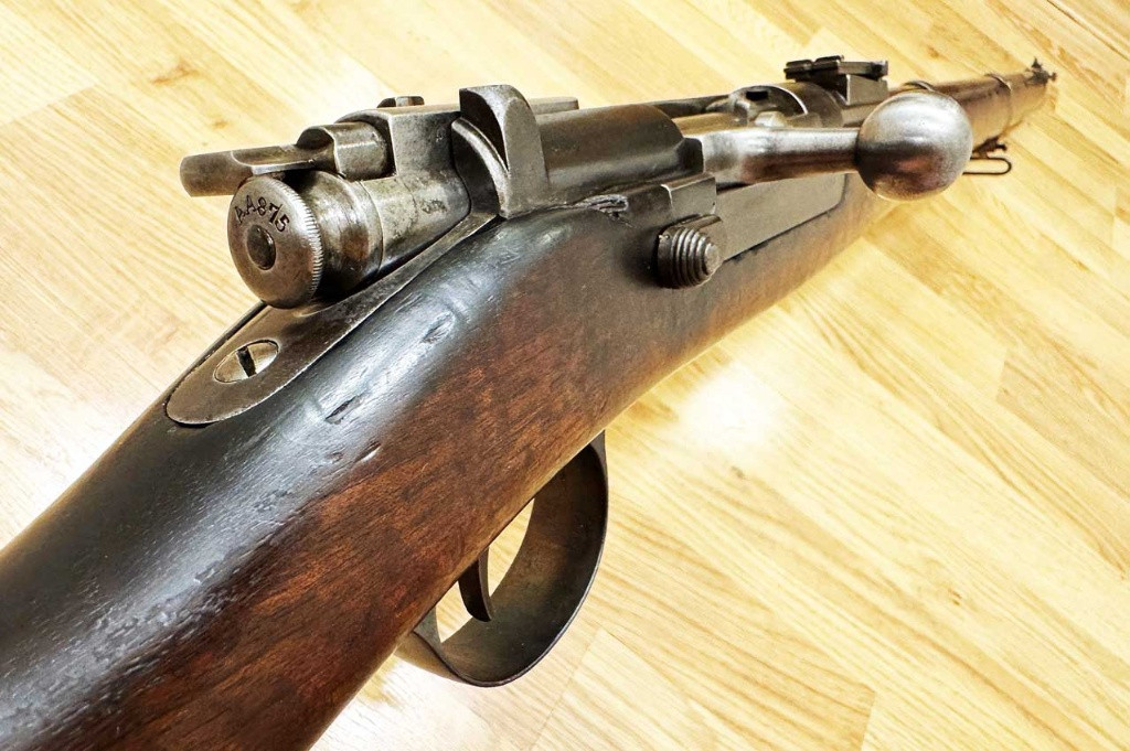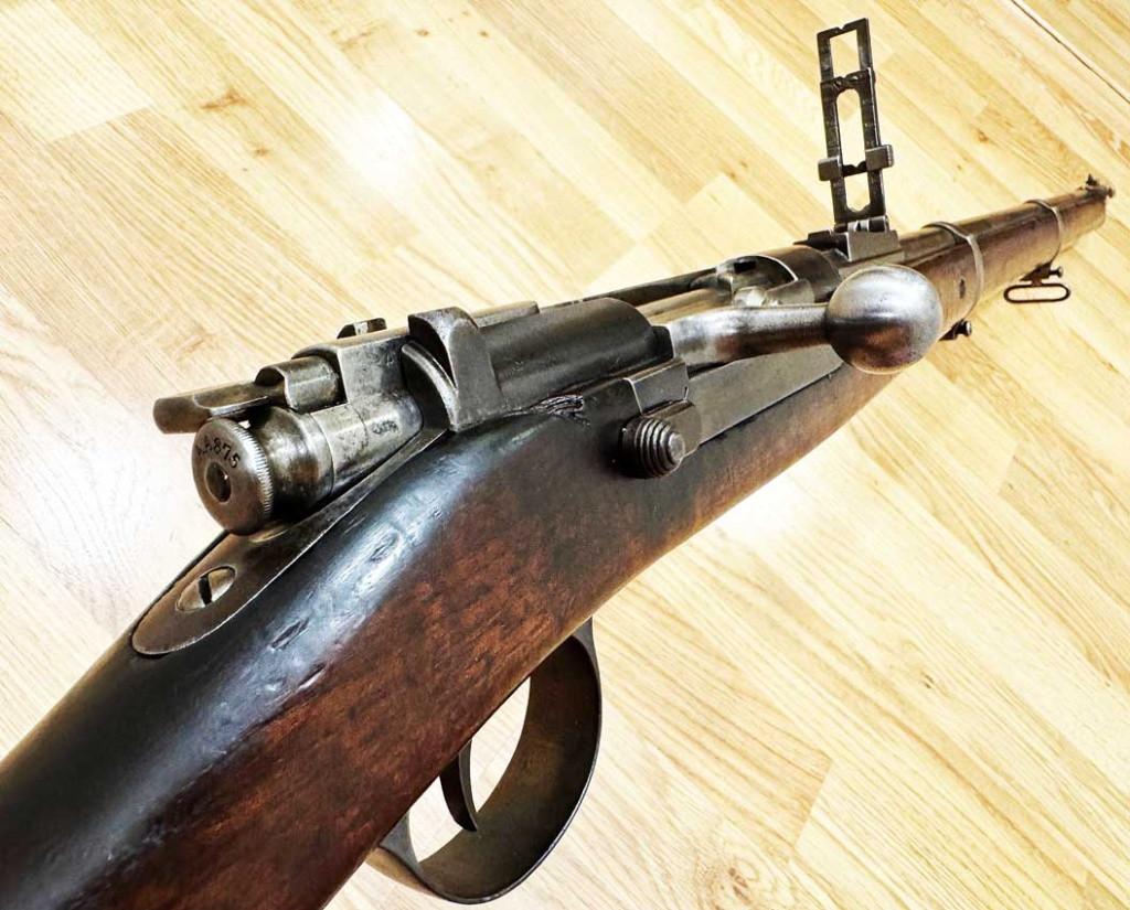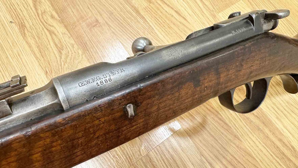 Popis:Steyr Kropatschek M 1886 krasne drevo
