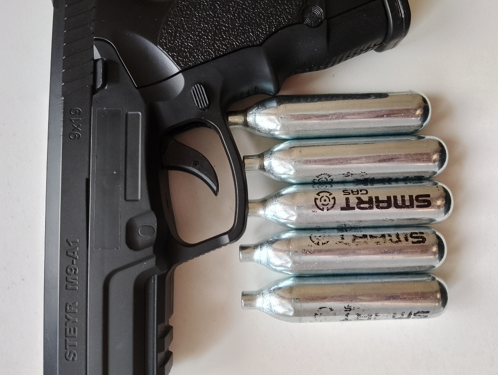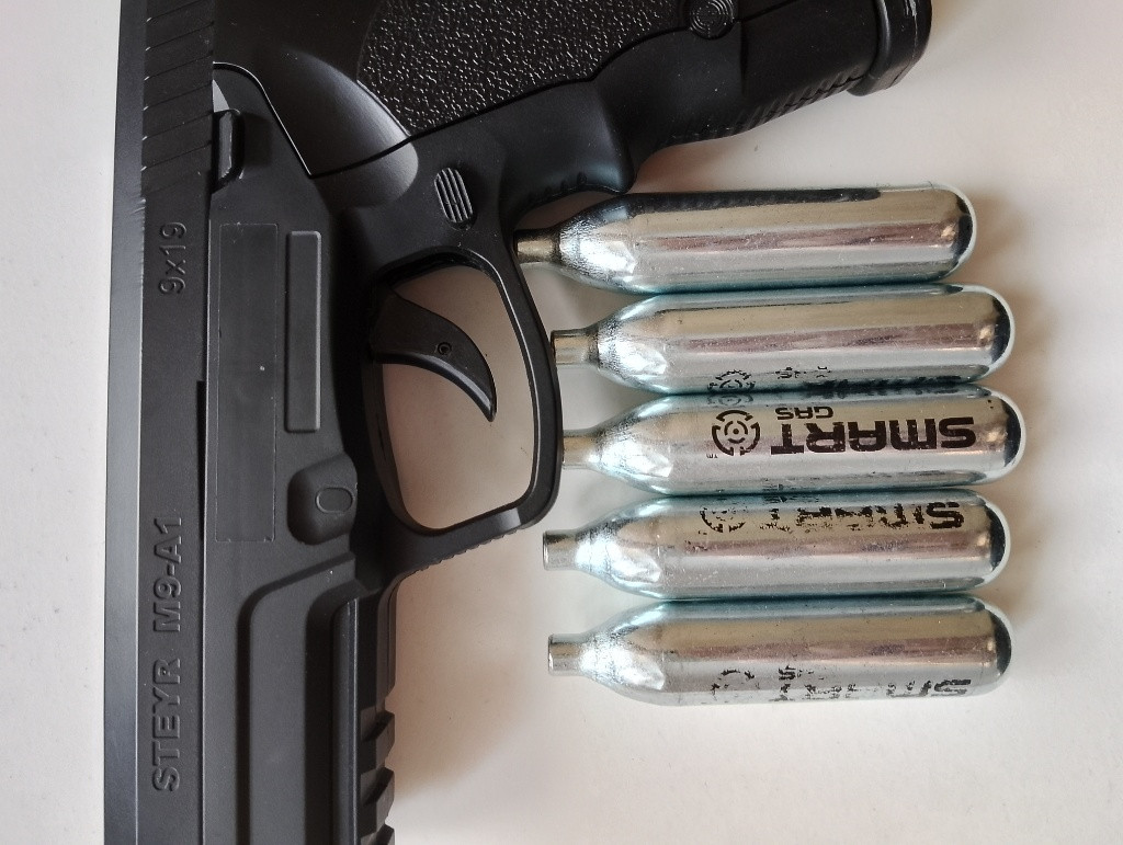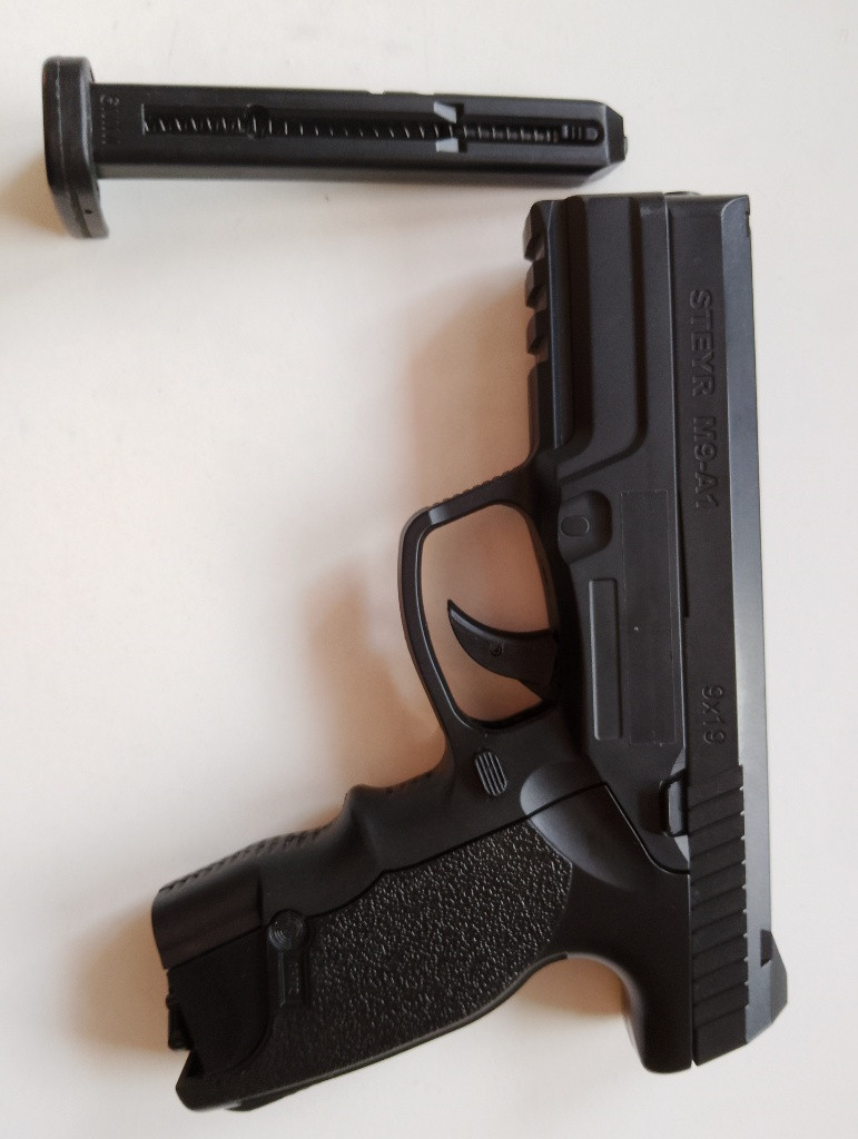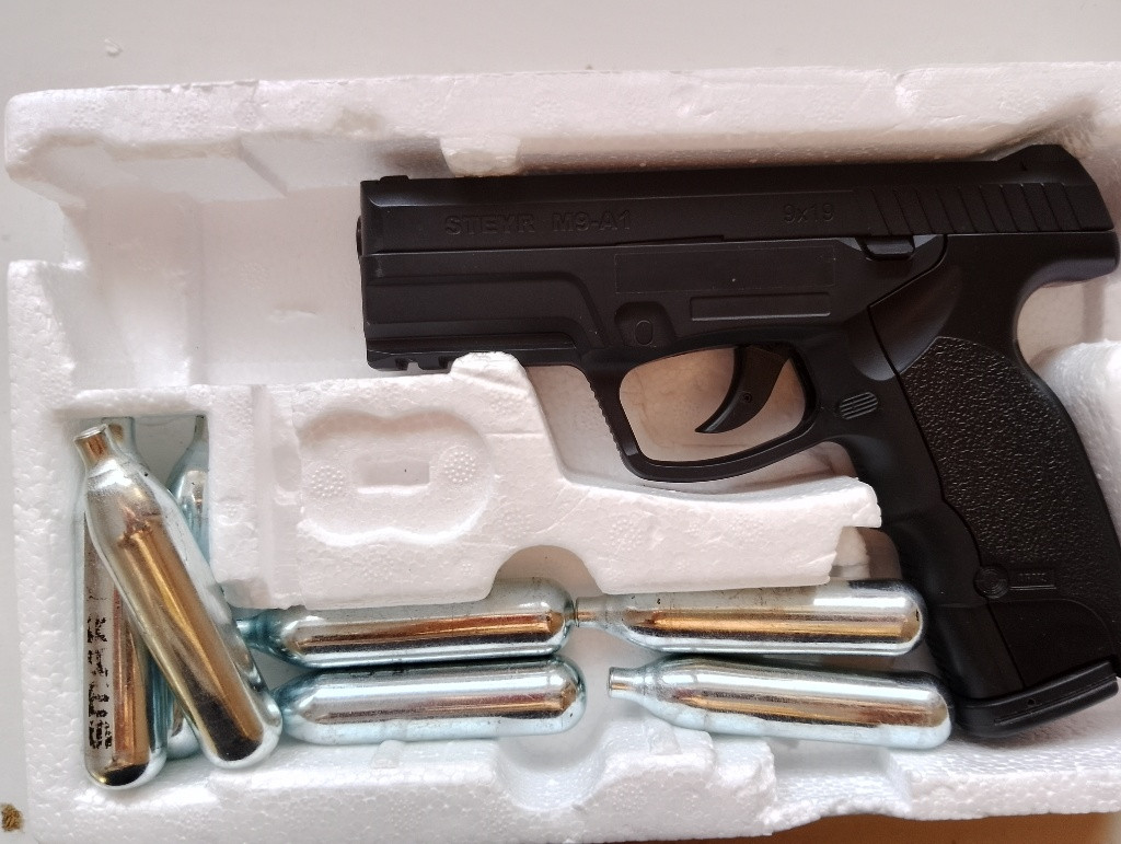 Zdravím prodám párkrát používanou airsoftovou zbraň Steyr M9-A1 od značky ASG + pár bombiček na CO2(pohon zbraně) prodávám ji protože pro mě už nemá využití tak budu rád když ještě někomu poslouží a udělá radost.