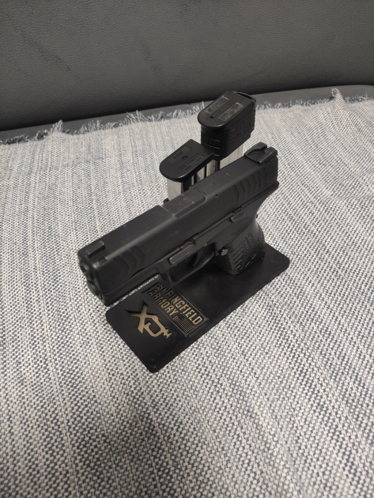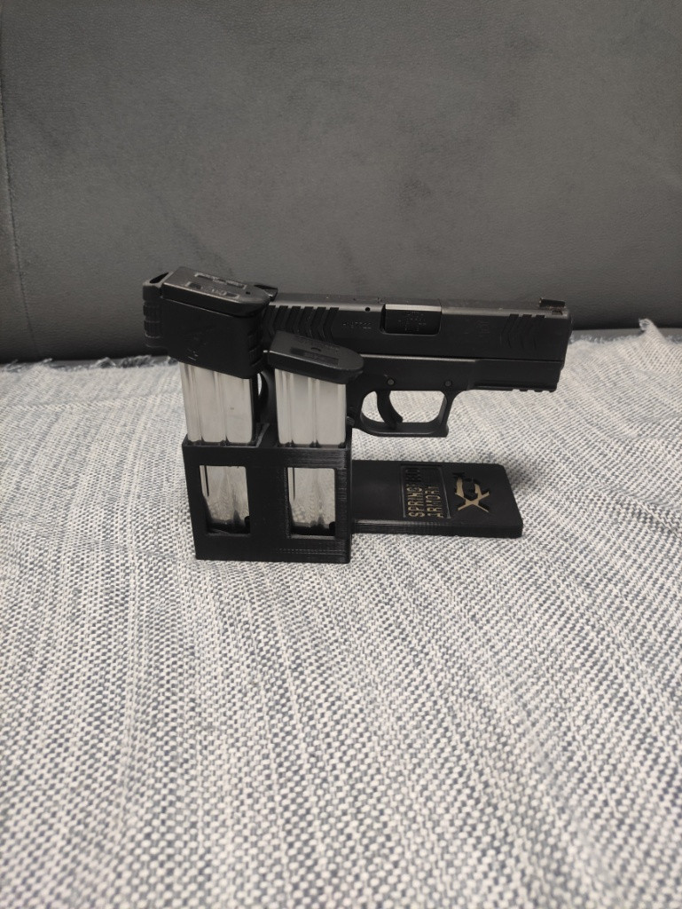 Prodám 3D tištěný stojánek na pistoli XDM případně glock 43X, 43, 48. Příplatek za logo / obrázek dle složitosti Logo / nápis je možné po domluvě upravit. Dostupné barvy: černá, písková, zelená.
