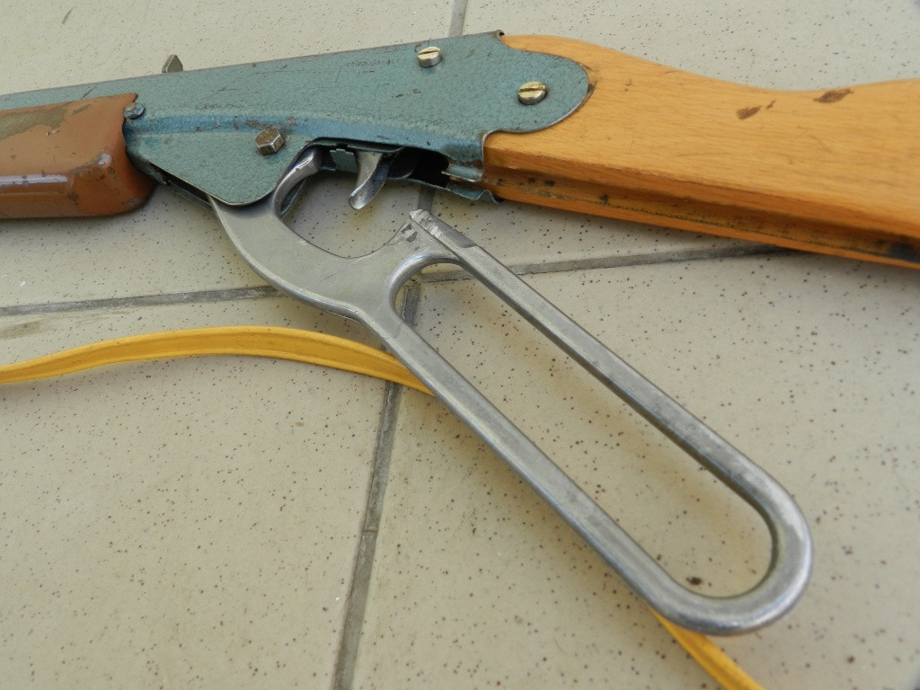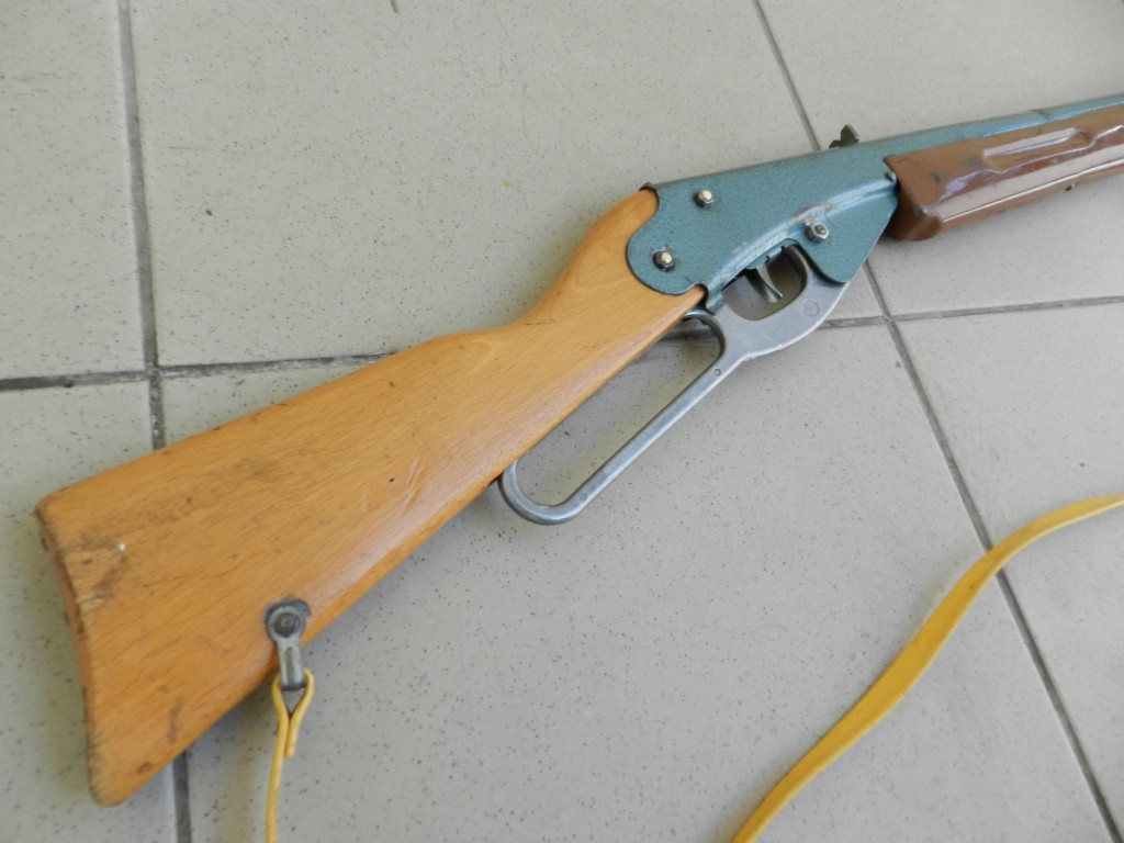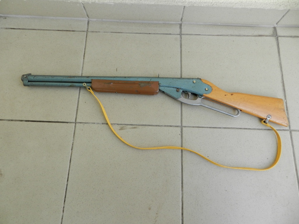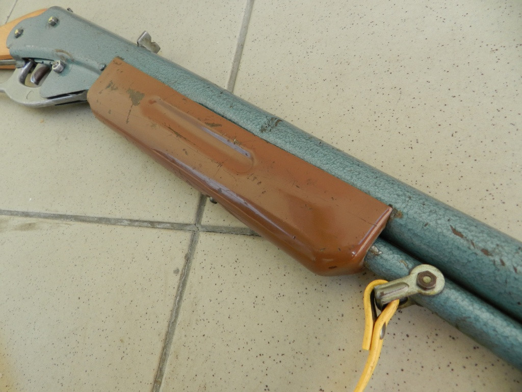 Retro dětská POLOVNICKÁ PUŠKA v komplet stavu od STROJSMALT 177 ze 60 let. Jde natáhnout, pero OK, ale nedrží natažená. Na opravu nebo díly.