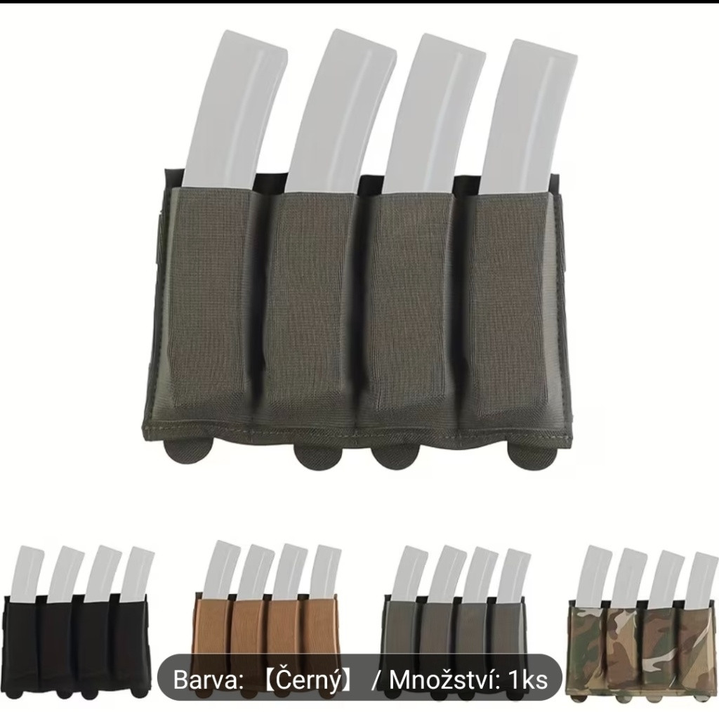 Vysoce kvalitní 4-sumka na pistolové nebo tenčí zásobníky. Prodávám potože se do ní nevlezly WE SMG 8 (MP7) GBB zásobníky a jak je na fotce vidět, tak se mi u toho přetrhl jeden šev, proto prodávám jako poškozeno, jinak je v absolutně nová a nikdy neviděla hřiště. Klasické pistolové zásobníky se tam ovšem vlezou nebo nějaké tenčí zásobníky do SMGček. Na konci příspěkvu přidám fotku z reklam na produkt. Posílám Balíkovnou a Zásilkovnou (oboje i na dobírku) a preferuji na kontakt email a SMSky, děkuji :)
