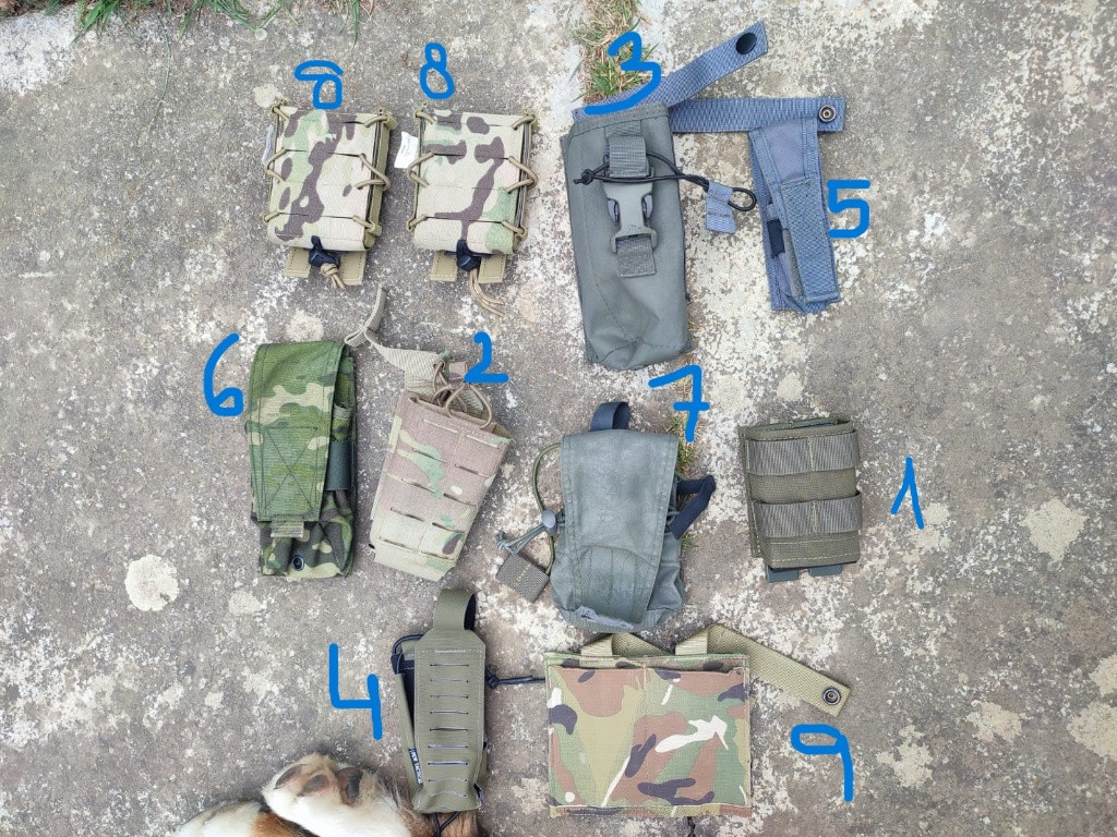Sumka 1 - replica Kiwi od Wosport - 150,- Sumka 2 - Fenix double M4 - 200,- Sumka 3 - TMC MBIR - původně wolf gray, stříklá zeleným krylonem - 100,- Sumka 4 - PewTactical - výklopná sumka na baofeng - 250,- (v rezervaci) Sumka 5 - TMC wolf gray replika CRYE pistolovka - 100,- Sumka 6 - OPS - použitá - double M4 - multicam tropic - 300,- Sumka 7 - MBIR - Wosport - zaprasena sprejem - 200,- Sumka 8 - Tasmanian Tiger speed uni mag sumka - JSOU PRYČ Sumka 9 - Idogear elastická m4 - 160,-