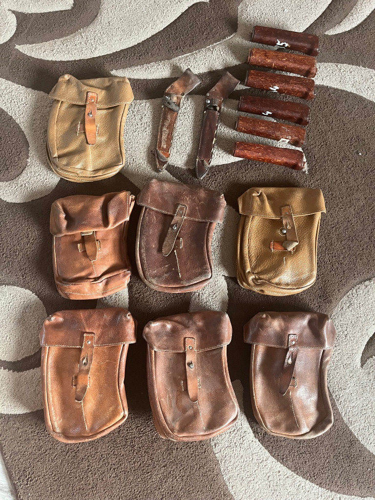 Nabízím viz foto: 7 ks. sumka na 4 zásobníky, každá má jedno poutko napůl odpárané, nutno přišít a budou zas plně funkční 2 ks. pouzdro na bodák, hodně použité 6 ks. originál podpažbí Možno prodat po částech dohodou. Edit: dvě sumky a jedno podpažbí pryč.