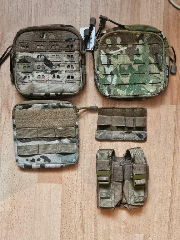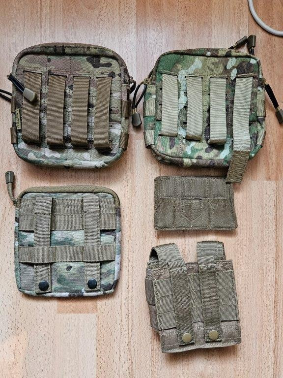 Prodám nové sumky MC Novritch - 3x různá provedení Utility (dvě větší 400/ks, menší 300). Panel na brokové náboje apod. se sucháčem 100. Univerzální / stavitelná na vysílačku 300. Vše nové Camel Bag orig MTP vč. vaku a hadice. Vše nové, jen bagu jsem uříznul popruhy, mělo to být uchycené na nosiči. (1100)