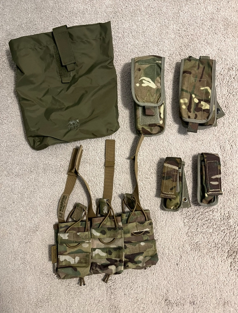 Prodám tyto přebytky , trojsumka od warrior, odhazovak od tasmanian tiger, a zbytek originál britská armáda. Cena za celek