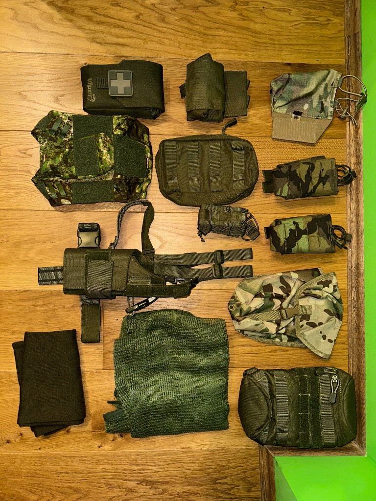 dobrý den prodám přebytečné vybavené 1x Boční sumka na suchý zip Na levou stranu new river gear multicam 300Kč 2x Sumka 2xM4 Open Laser vz95 300Kč kus 1x sumka na čutoru multicam 150Kč 1x Sumka na láhev 1l Molle zelená 8FIELDS 200kč 1x odhazovák zelený 8FIELDS 100Kč 1x Univerzální sumka zelená 8FIELDS 150Kč 1x Sumka na granát zelená 8FIELDS 100Kč 1x Univerzální stehenní pouzdro na pistoly zelená 8FIELDS 250Kč 1x baracuda zelená 50kč 1x vojenská šála 50Kč 1x potah na helmu emerson gear 200Kč 1x Lékárnička Viper Tactical zelená 200kč. pro více informací pište na e-mail nebo na telefon. možnost předání v okolí berouna nebo poslat balíkem