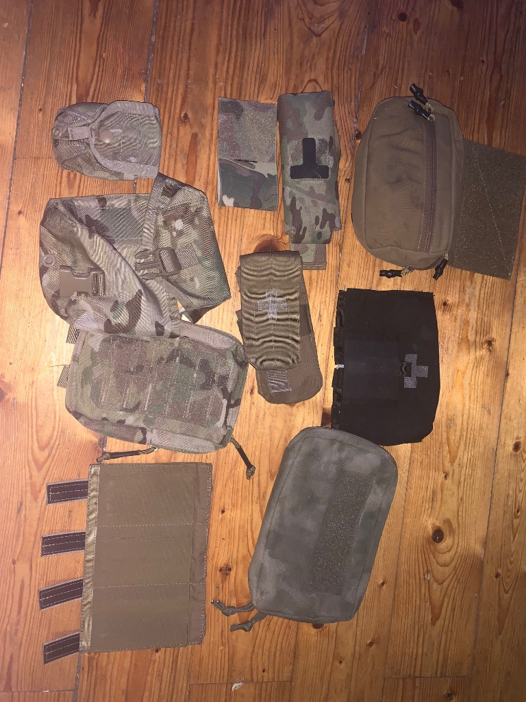 56gear pružná triple mag pouch-450 Eagle Ind. Saw pouch- 400 Břišní sumka-200 Us army ocp frag pouch-180 Lbx ifak lekarna-600 Tasmanian tiger admin pouch-500 Idogear univerzální sumka-300 Usmc sumka na dva zásobníky-180 Držák na turniket-150 Custom gear tq sumka-250