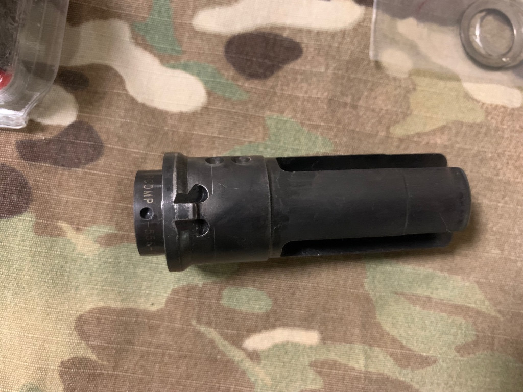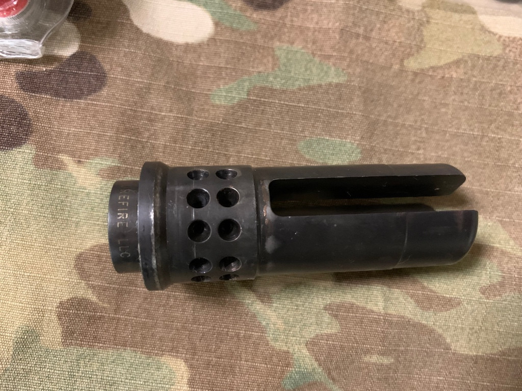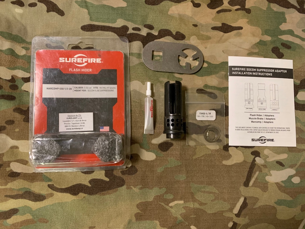 Použitý tlumič plamene od renomované firmy Surefire, kompatibilní pro tlumiče a lineární kompenzátory s montáží Socom Fast-Attach. Perfektně tlumí plamen. Možnost nastavit do více poloh pro ideální kompenzaci zdvihu zbraně.