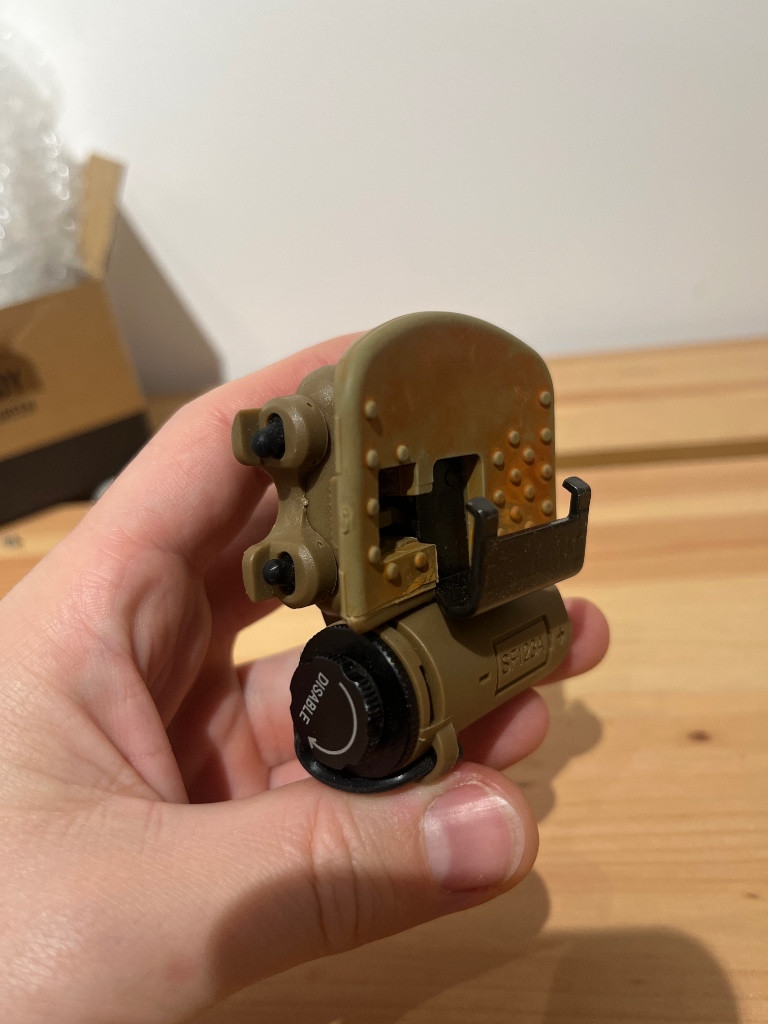 Prodám přilbovou taktickou svítilnu HL, kopie Surefire HL1. Bílé a červené světlo. Montáž na přilbu. Funguje, poháněna článkem CR123. Posílám zásilkovnou.