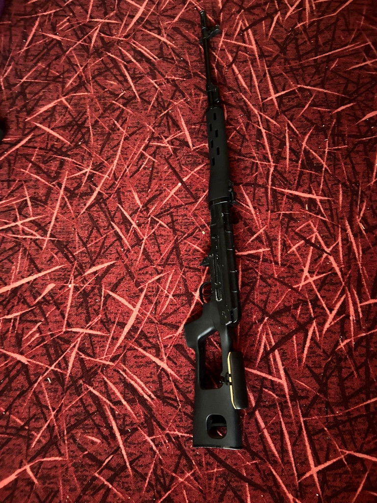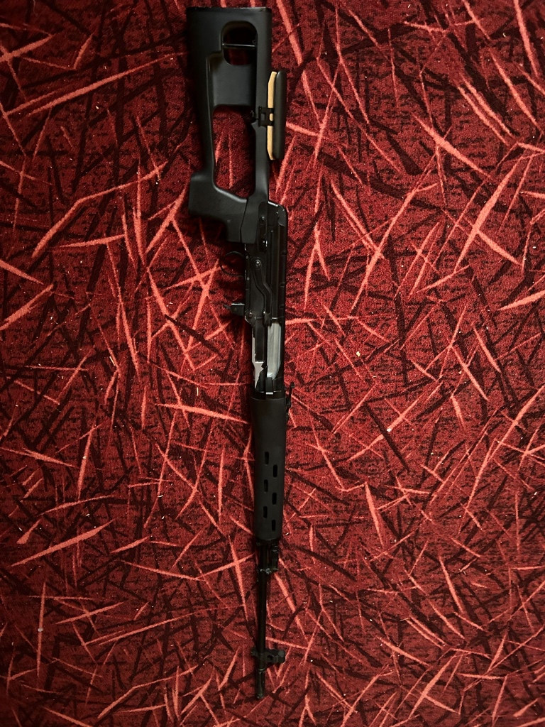 Zdravím, prodám svd dragunov, už se mi tu na něj jen práší, je ve full upu( píst,hlava pístu, ocelový záchyt pístu, airsoft pro hop up komora) přidám několik náhradních pružin a 5x zásobník. Mohu po domluvě přidat madbull novou hlaveň 6,01 590mm.Cenu nechám dohodou. Prosím spíše sms.