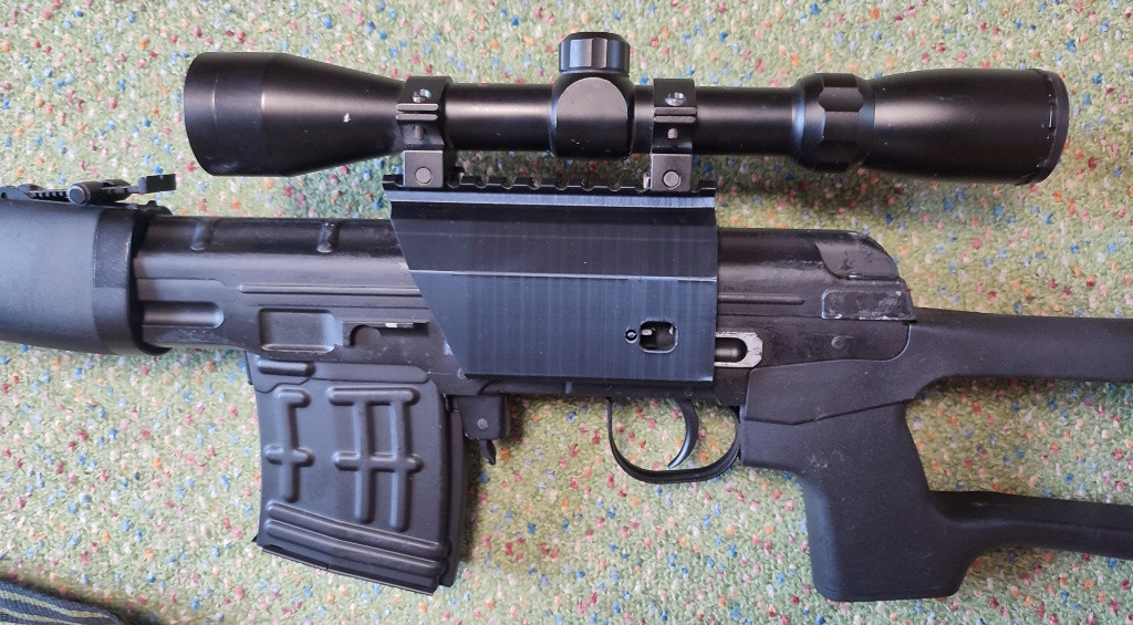 Prodám párkrát střílený dragunov od A.C.M. kupoval jsem ho tak cca rok zpět. Od té doby byl asi na dvou akcích. A už nehraju takže se tu na něj akorát práší, ale mohl by dělat radost dal (: Přidám 1x zásobník a 1x popruh + můžu ještě přidat vytisknutý držák optiky ale upřímně je to spíš jako okrasa než na funkčnost (nedrží 100% v liště a lehce se hýbe do stran) Takže celkově: 1x SVD dragunov 2x Zásobník 1x Popruh +1x 3D vytisknutý držák optiky.