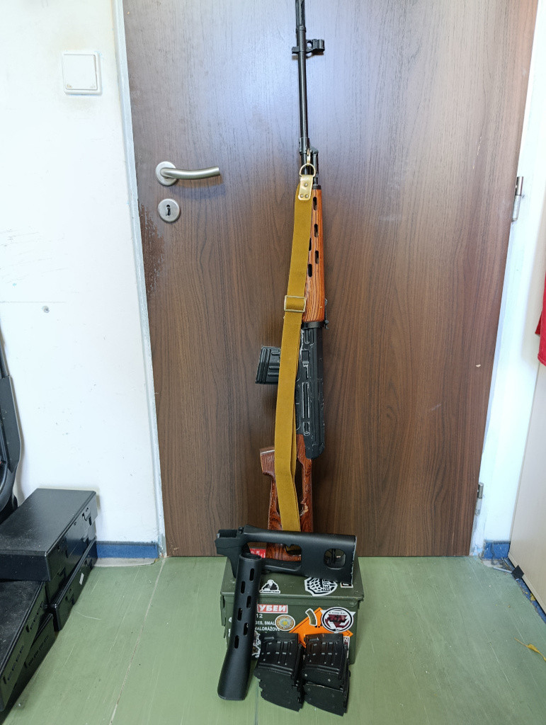 Zdravím, Posílám do světa toto SVD. Výrobce nejspíš A.C.M. Ke zbrani - Dřevěné Pažbení, Plastové, 7 zásobníků. Vevnitř full AS-Pro Upgrade Výkon bohužel neznámý.