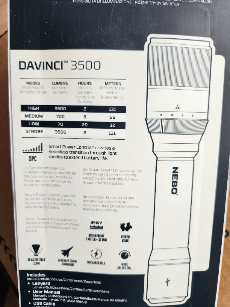 Prodám novou svítilnu NEBO Davinci 3500,origo zabalená od výrobce nikdy nepoužitá. Odolnost IP 67 proti vodě a prachu, možnost použití jako powerbanku, 3500 lumenu, dosvit 131m,hliníkové tělo. Prodám za 1600kč + Zásilkovna. Na YouTube dohledáte recenzi i aktuální ceny v Eshopech kolem 2300 - 2500kč.