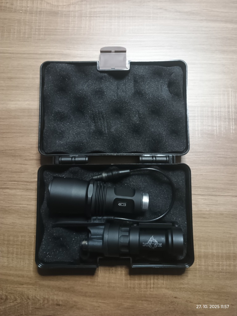 Svítilna zn. Night Evolution typ M961 kopie SureFire, dvojitý spínač (on-off + kabelový tlakový), LED, napájení, 3* CR123, integrovaná ,montáž na RIS