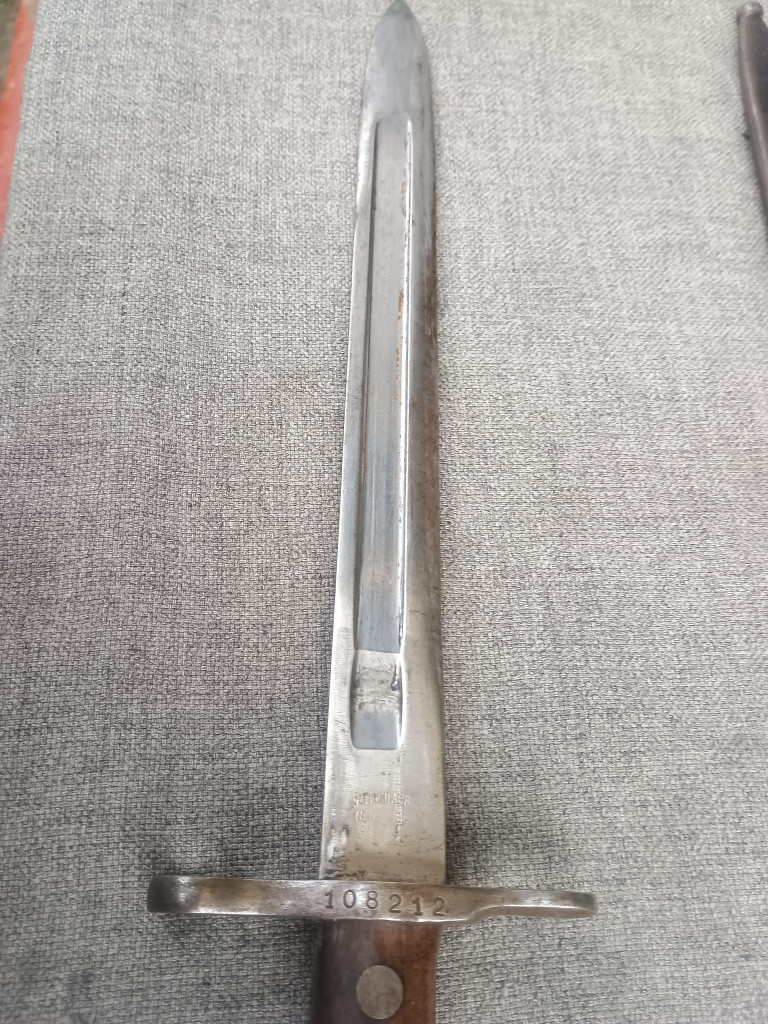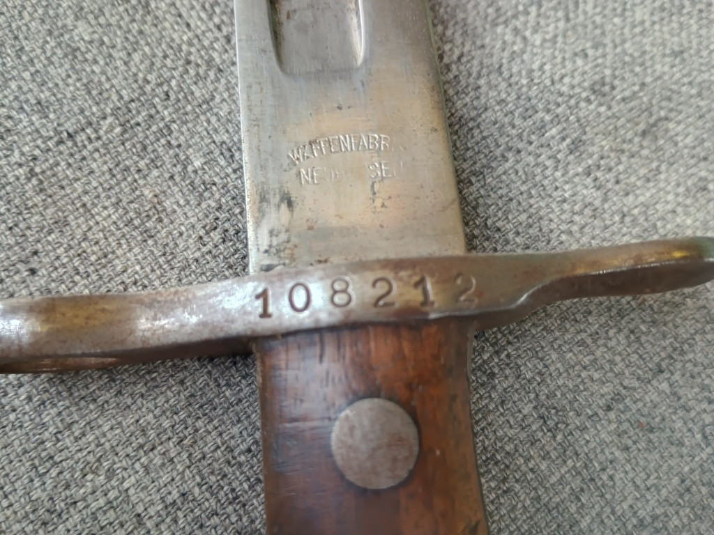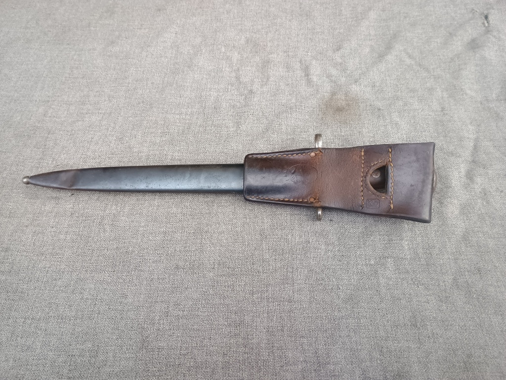 Popis:Švýcarský bajonet M1918 na pušku Schmidt Rubin