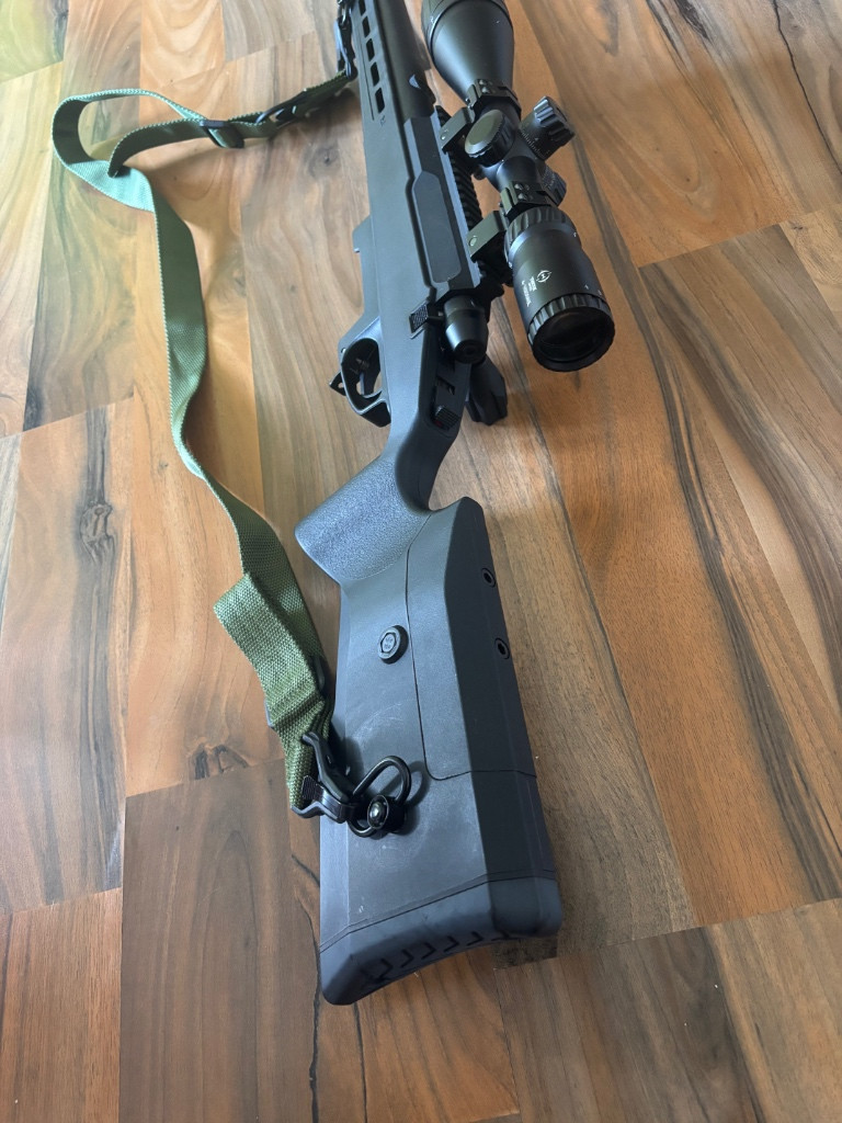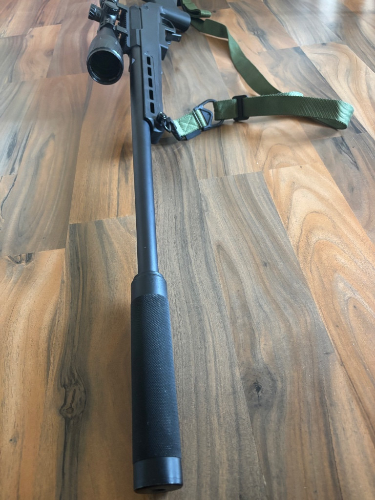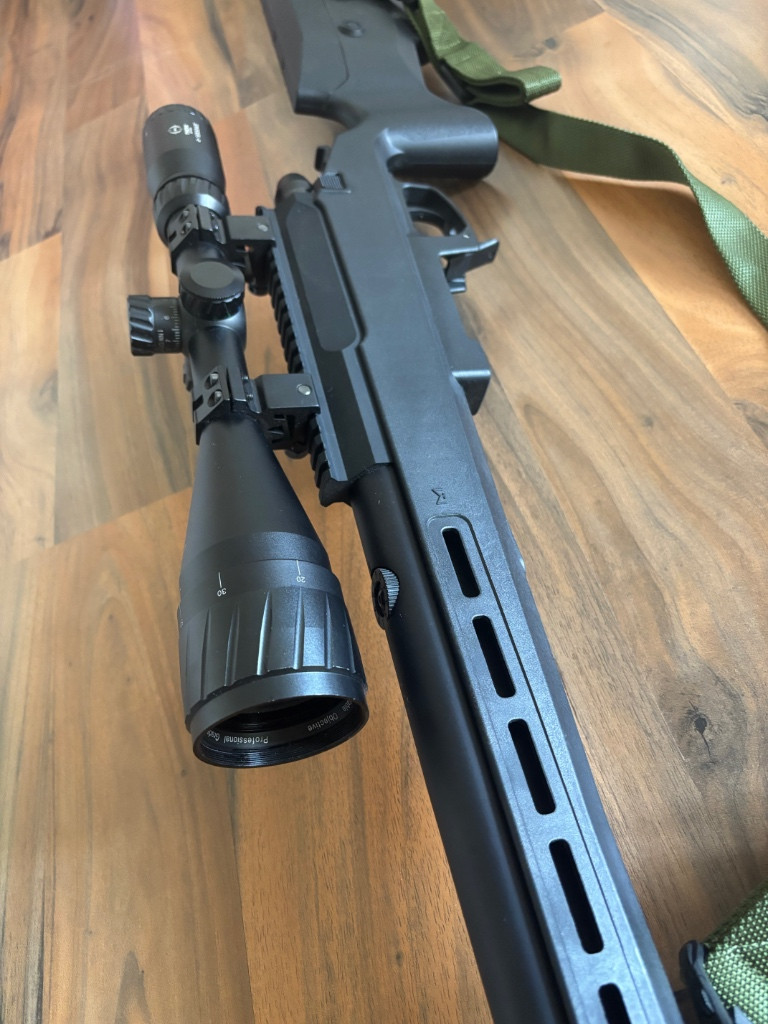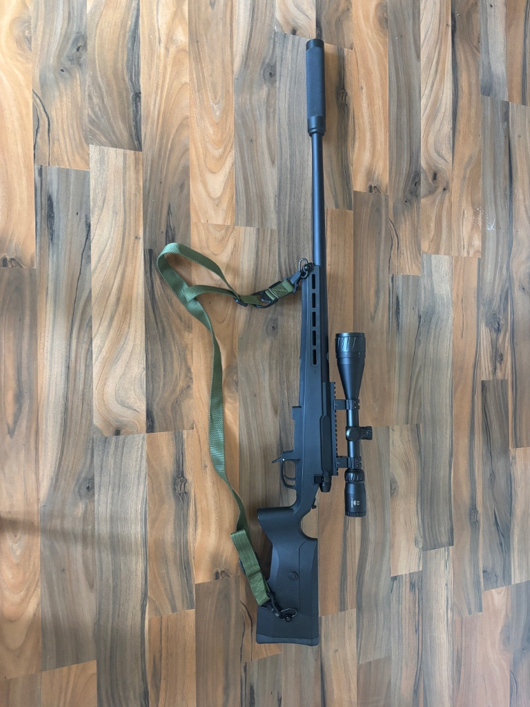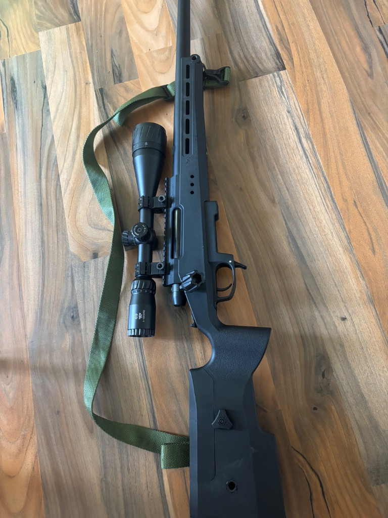 Zdravím, Prodám TAC-41 od firmy silverback, s optikou (Optika 4-16x50 AOE s podsvětleným křížem) a s popruhem. Po domácku vyrobený tlumič. Trefit za ideálního počasí se dá osoba okolo 90 metrů. 3,2 J na 0,48g, 115 m/s. Vyměněna hlaveň, gumička, pružina, mausfarth hlava pístu se vzduchovou brzdou, zatížený píst. Jsem ochotný na cenně se domluvit. Kdyby jste měli nějaký dotaz, klidně se ptejte.