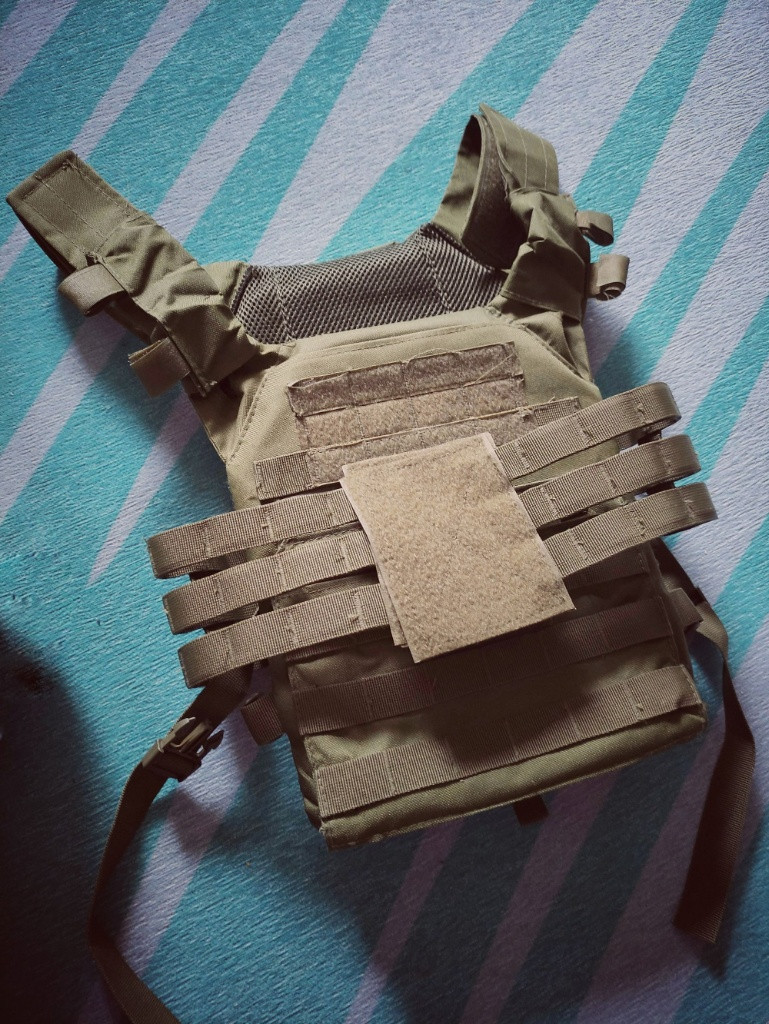 Velmi lehká a funkční vesta typu Plate Carrier vyrobená z odolného nylonu. Je vyroben ze dvou panelů - přední a zadní, které jsou spojeny lehkým skeletovým cummerbundem, které jsou vyrobeny pouze z vyztužených popruhů. Tyto popruhy mohou také pojmout další příslušenství a sumky. Nosič plátů je vybaven integrovaným univerzálním muničním pouzdrem, který pojme 3 zásobníky typu M4 / M16 nebo AK. Zásobníky jsou zajištěny gumovými pásy s držadly - takový design umožňuje rychlou výměnu zásobníku a také drží zásobníky pevně uvnitř sumky. Díky modulárnímu systému MOLLE lze na vestu instalovat další sumky dle potřeby - na přední i zadní panel. Každý panel má vstup pro balistické vložky střední velikosti. Zahrnuty jsou dvě repliky těchto vložek (vyrobené ze silné pěny). Na hrudi je suchý zip - užitečné pro přidávání nášivek, krevní skupiny... Vesta je plně nastavitelná, lze ji regulovat tak, aby vyhovovala jakémukoli uživateli a jeho preferencím