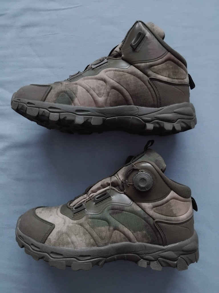 Zánovní taktické boty s rychlozavazováním BOA v barvě A- TACS, vel.43. Syn je měl na pár akcích v létě a teď ho už tlačí. Pěkné, nezpoškozené, BOA plně funkční - jako nové. Vhodné i na turistiku. Původní cena 900,-kč, nechám za 400,-kč