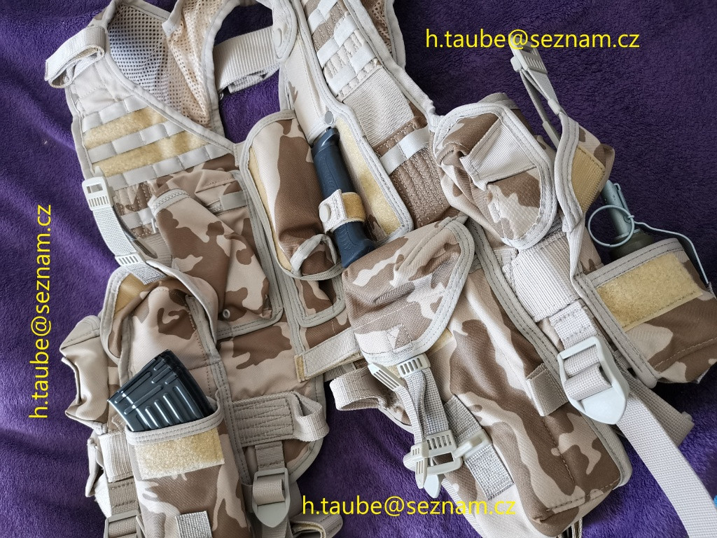 Prodám taktické vesty od SPM Liberec vyrobené pro AČR zahraniční mise v pouštním prostředí. Ve vestě je integrovaný slaňovací systém,2x sumka na 2 zásobníky pro sa58/AK a podobné.Dvě granátové sumky,pouzdro na nůž a další kapsy na nesení výstroje. Vesty jsou nové ještě nevybalené přímo od výrobce.Kvalitní zpracování pro vojenské použití,žádná laciná napodobenina.Pokud máte neprůstřelnou vestu bez sumek,tak tuhle vestu nahodíte přez neprůstřelku nebo můžete nosit jen na oblečení.Vesta se dobře nosí s batohem,velikost nastavitelná univerzální. Cena za kus 2000kč + Zásilkovna,k prodeji cca 10 kusů